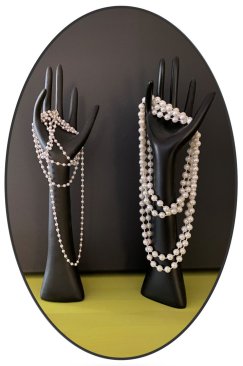 Eingearbeitet wurden diese Kunstwerke mit Perlen, Modeschmuck