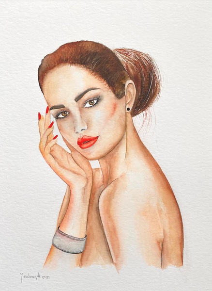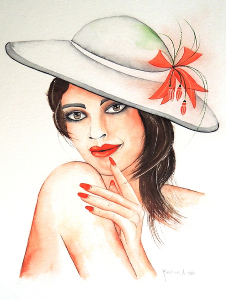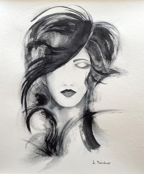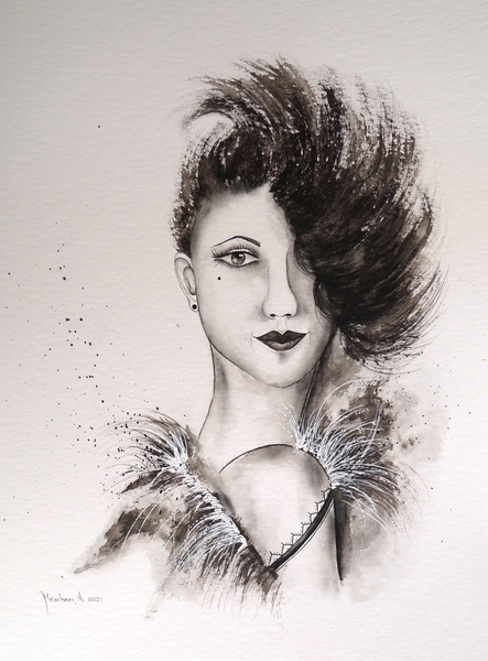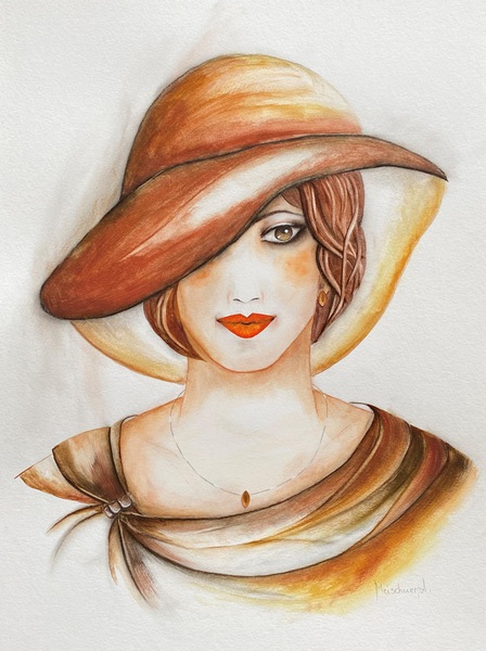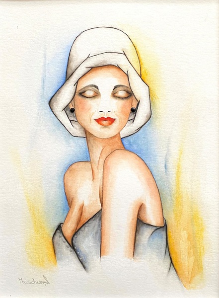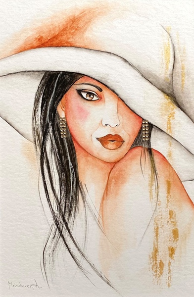 Technik: Aquarell, Pastell, Kohlestift, Perlen und Modeschmuck
